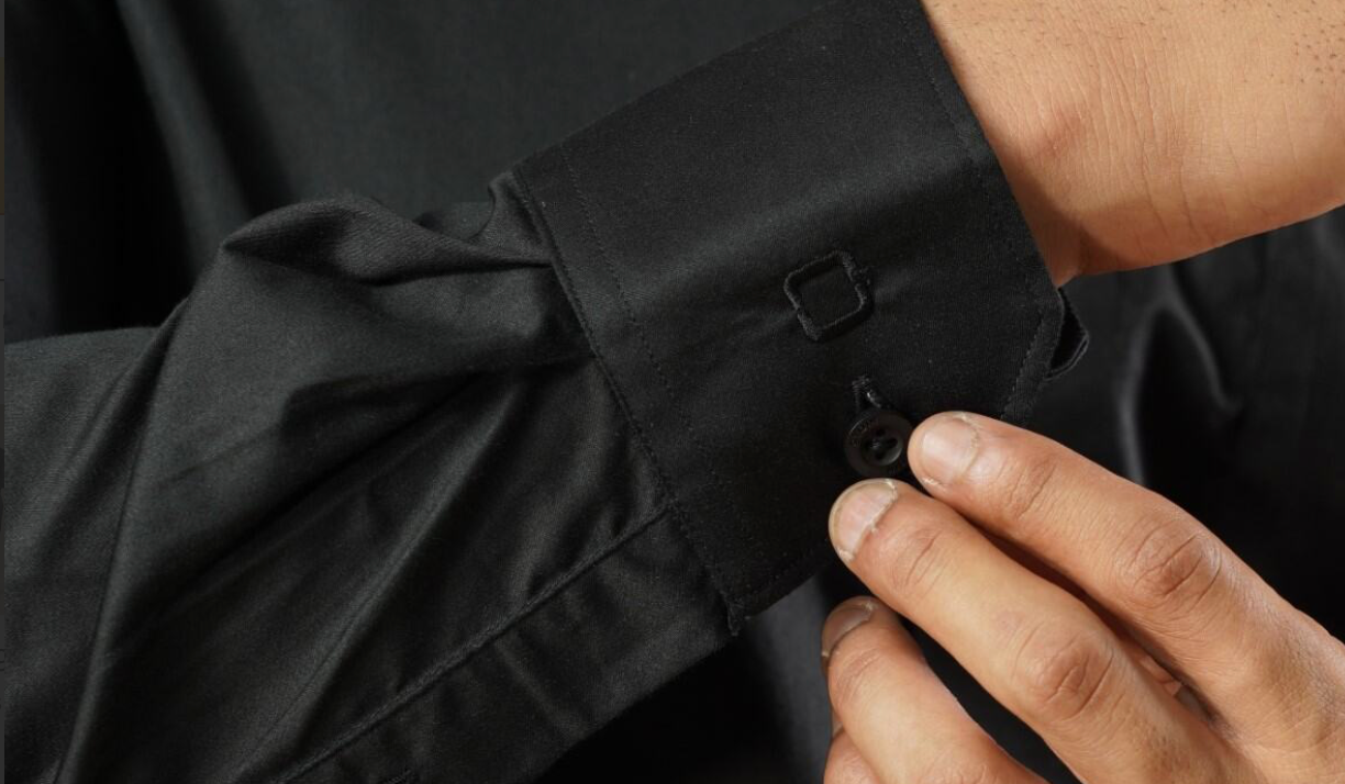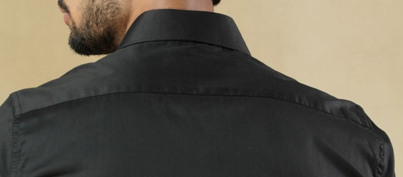 Commanding presence in a sharp black profile—this shirt does all the talking