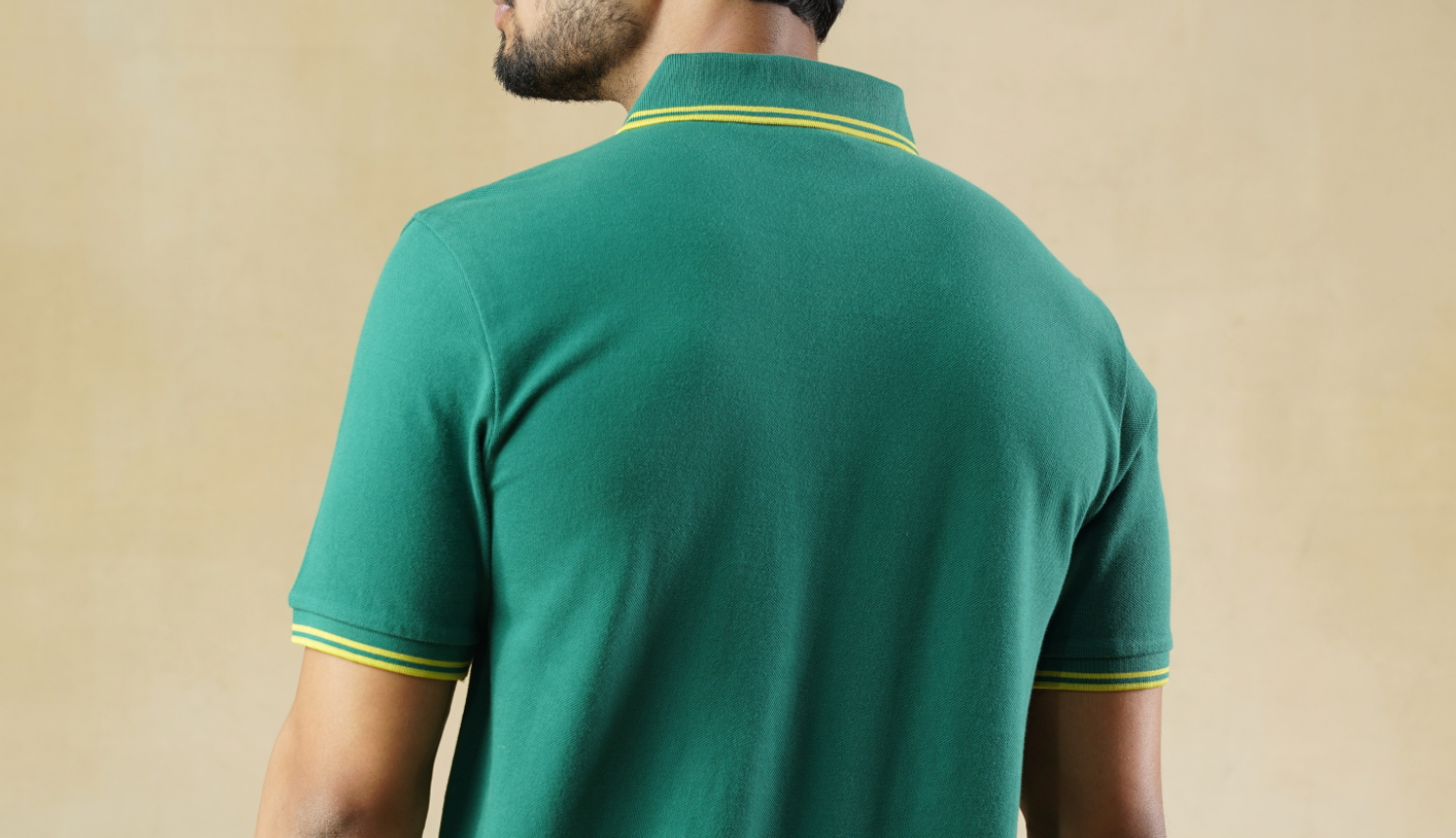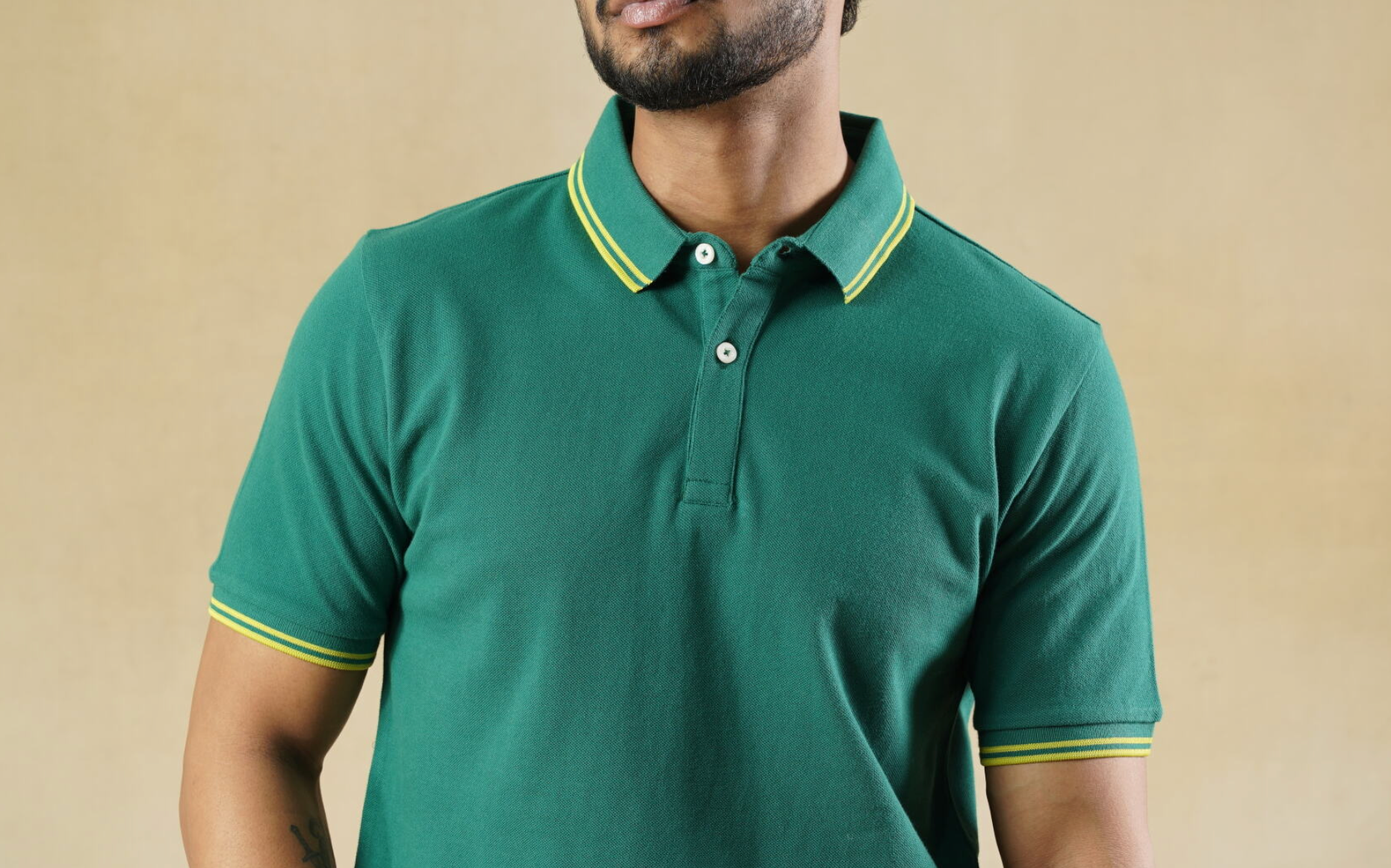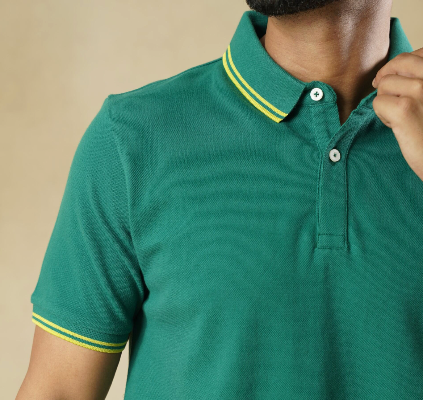 A bold green polo featuring sporty yellow contrast tipping—cut in breathable cotton pique