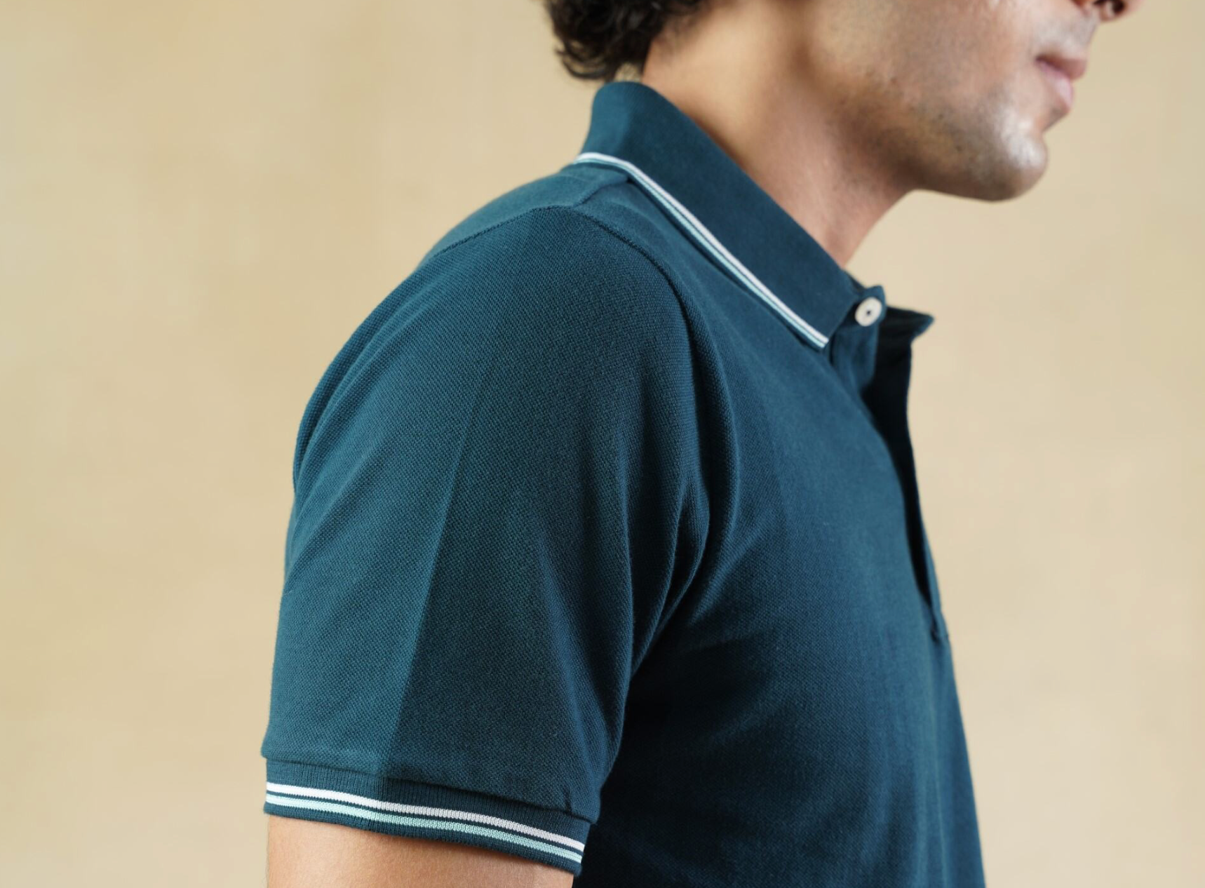 A rich teal polo with sharp white tipping—crafted in breathable cotton pique for refined casualwear