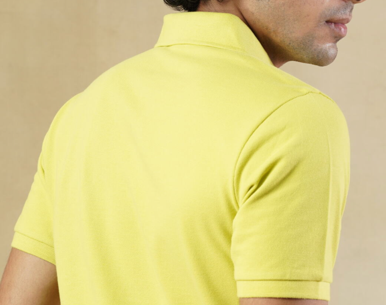 A clean yellow polo cut from breathable cotton pique—lightweight, bold, and summer-ready