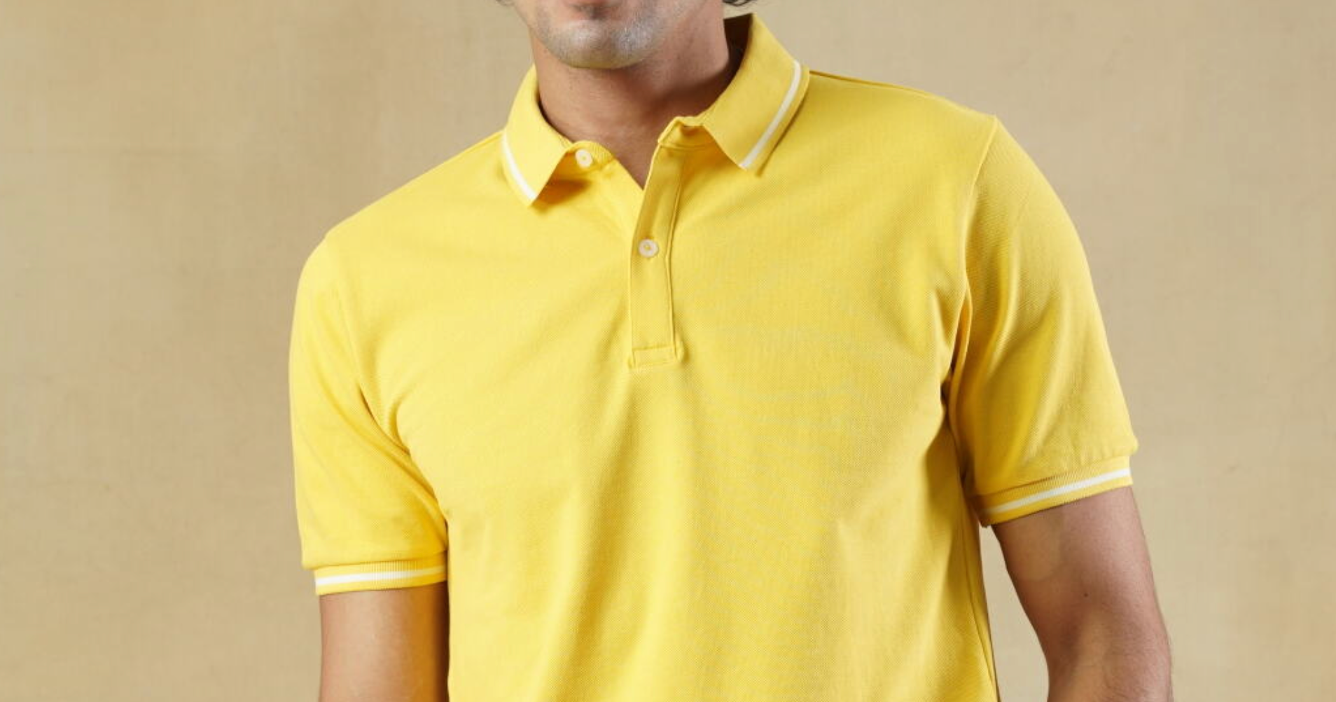 Men's 100% cotton Yellow Polo Neck T-Shirt
