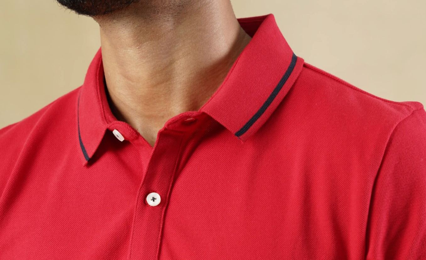 Red Cotton Polo T-shirt with contrast tipping