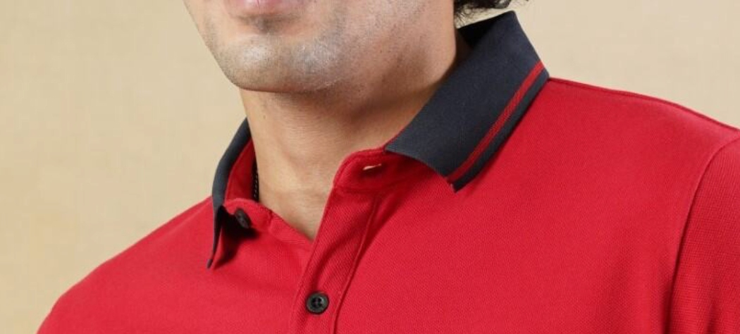 Red Pique Contrast Collar Cotton Polo T-shirt