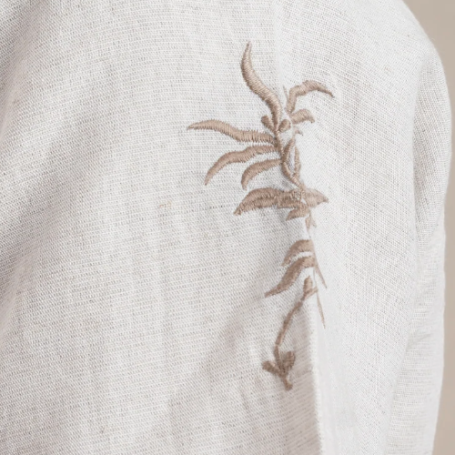 A versatile shirt with beautiful botanical embroidery work on either arm.